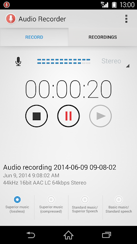 This app makes it easy to record and playback audio on your smartphone or tablet. An intuitive recording interface gives you easy access to record, pause, audio editing, recording settings and other functions.