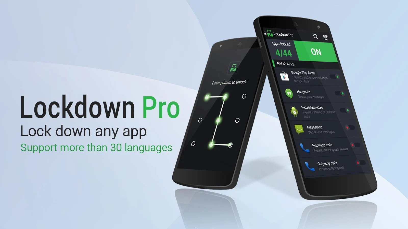 ★ Lockdown Pro is the BEST app lock and privacy protect tool, it can lock any app, such as SMS, Gmail, Facebook, Whatsapp, SnapChat, Instagram, Viber, Line, Evernote, etc and special apps including Lock install/uninstall apps, Lock incoming calls, etc.